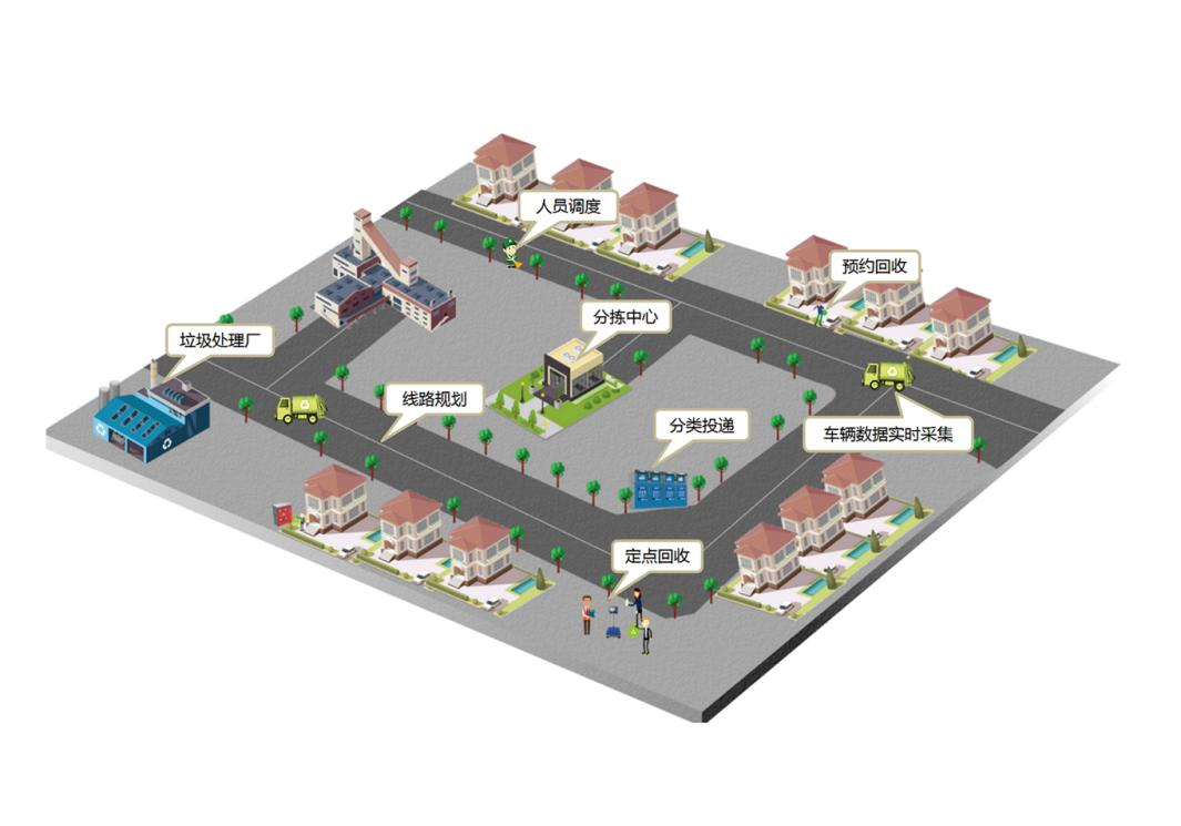 垃圾分(fēn)類管理(lǐ)主要由運營服務+三大(dà)硬件設備(智能垃圾袋發放機、智能垃圾分(fēn)類箱、智能垃圾分(fēn)類可(kě)回收箱)+雲服務平台+APP平台組成,通(tōng)過智能技術手段實施垃圾分(fēn)類投放、回收。搭建城(chéng)市區(qū)、街(jiē)鄉鎮、社區(qū)(村(cūn))三級垃圾排放登記管理(lǐ)系統,前端采集系統通(tōng)過前端分(fēn)類設備采集居民前端排放稱重計量數據、采集垃圾樓、密閉式清潔站稱重計量數據,街(jiē)鄉鎮、廚餘垃圾車收運信息與質量信息、轉運站進場(chǎng)重量、車輛質量信息以及末端處理(lǐ)廠進場(chǎng)信息的(de)實時(shí)采集,利用(yòng)信息化(huà)數據傳輸、物(wù)聯網技術應用(yòng)以及信息化(huà)平台垃圾分(fēn)類全流程精細化(huà)管理(lǐ),實現垃圾産生主體各類垃圾的(de)全流程實時(shí)監管,對(duì)垃圾分(fēn)類效果有效監管,保留對(duì)垃圾質量判定追溯的(de)數據信息。